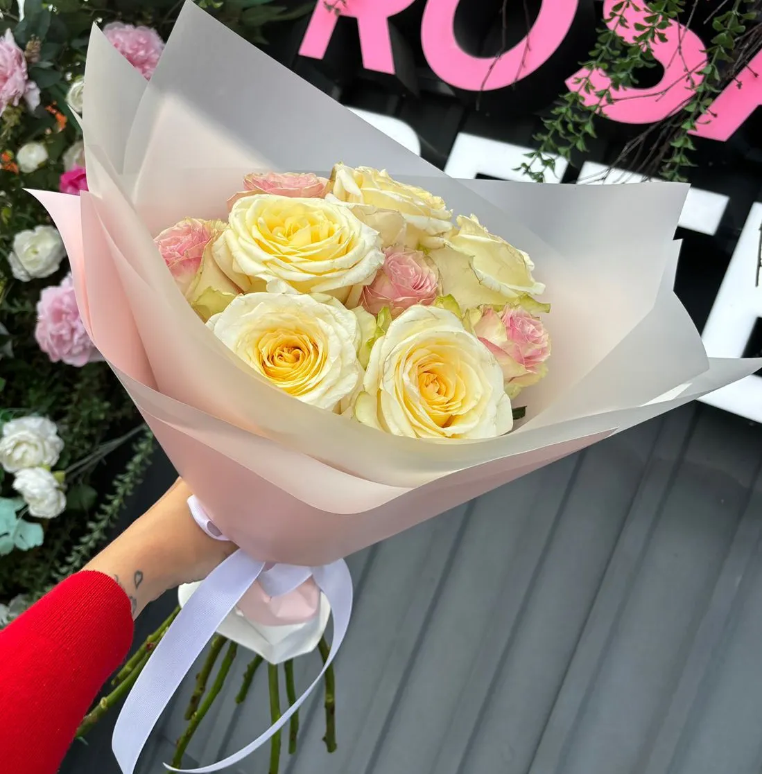 Cостав данной композиции может незначительно поменяться, из-за отсутствия некоторых позиций или сезонности цветов.