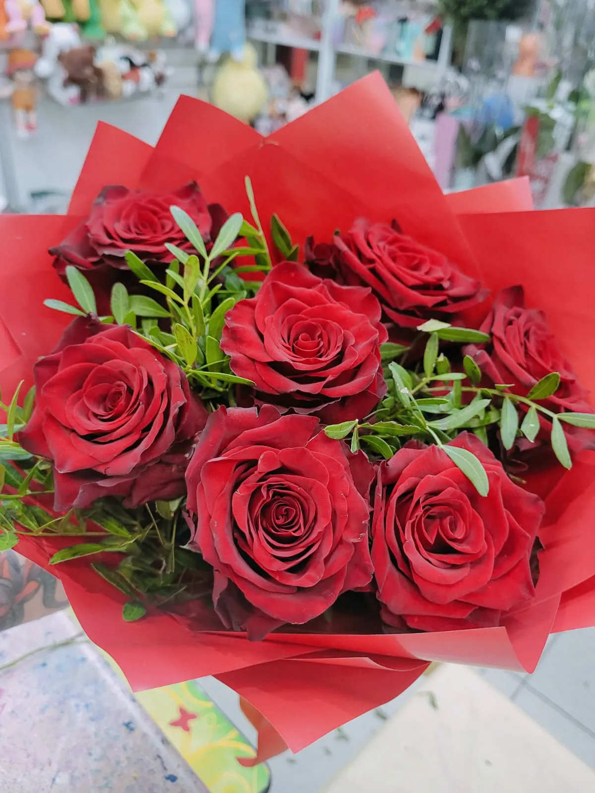 • Стандарт - 7 роз, зелень, оформление, упаковка, лента