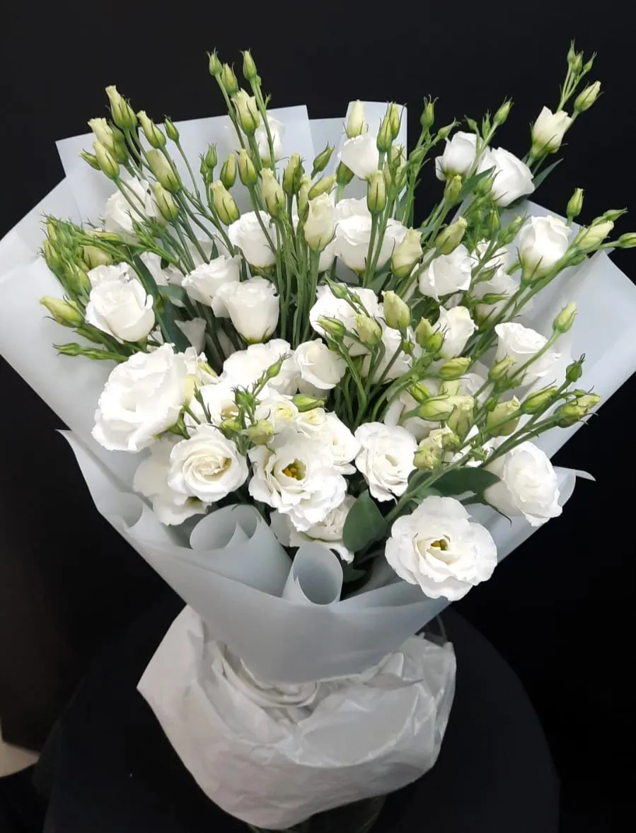 Аромат белых эустом лёгок и ненавязчив, он дополняет общую атмосферу нежности и гармонии. Такой букет не только украсит любое пространство, но и станет источником вдохновения, напоминая о том, как прекрасна жизнь в своих самых простых проявлениях.